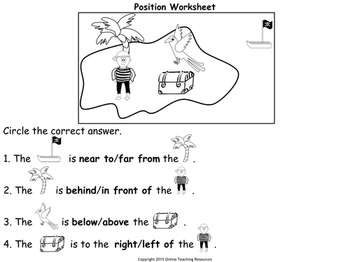 Free Preschool & Kindergarten Position Worksheets ... Position Worksheets Learn positional words (right / left, above / below, etc) Printable kindergarten worksheets on positional concepts such as "above and below", "left and right", "facing left or right", "between" and "before and after". Above & below worksheets Left and right worksheets Facing left and right worksheets "Between" worksheets